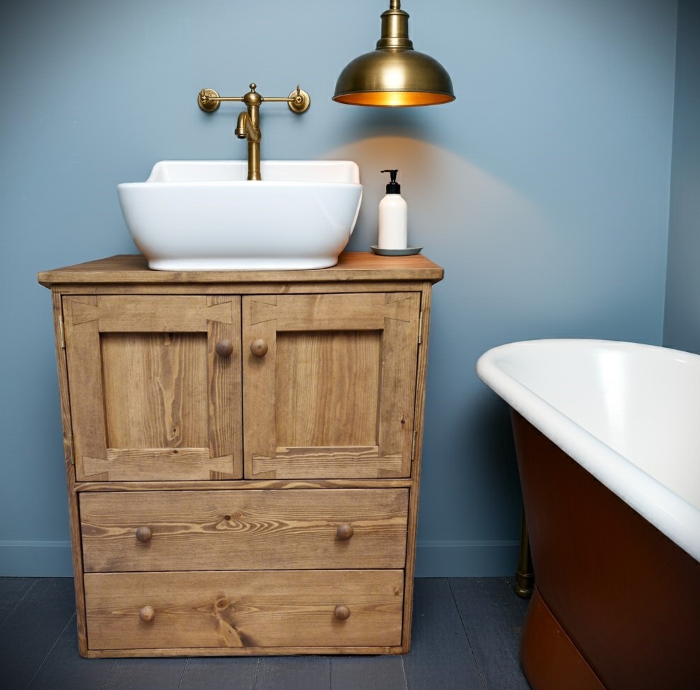 Our rustic wooden sink stand has been designed by Marc Wood in our signature ‘dovetail ‘ style and is handmade by Marc and the team in Somerset UK from natural, sustainable FSC Redwood timbers.