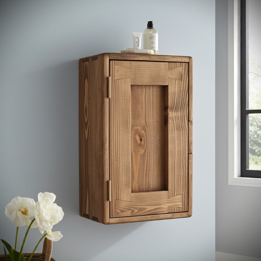 Our rustic wooden bathroom cabinet measures 50 cm High x 30 cm Wide x14 cm Deep; Custom sizes are available, see our Bespoke Furniture page for details.