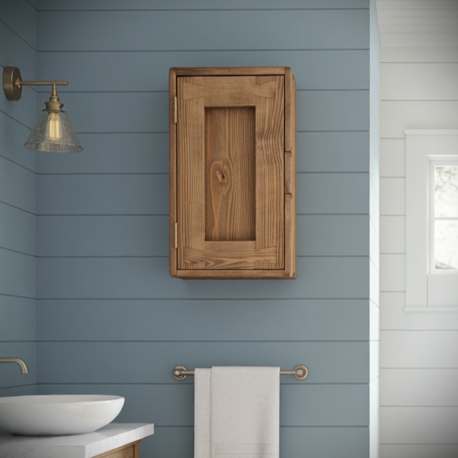 This ‘modern apothecary’ style small wooden bathroom cabinet features vintage style brass hinges and a ball catch closing mechanism.