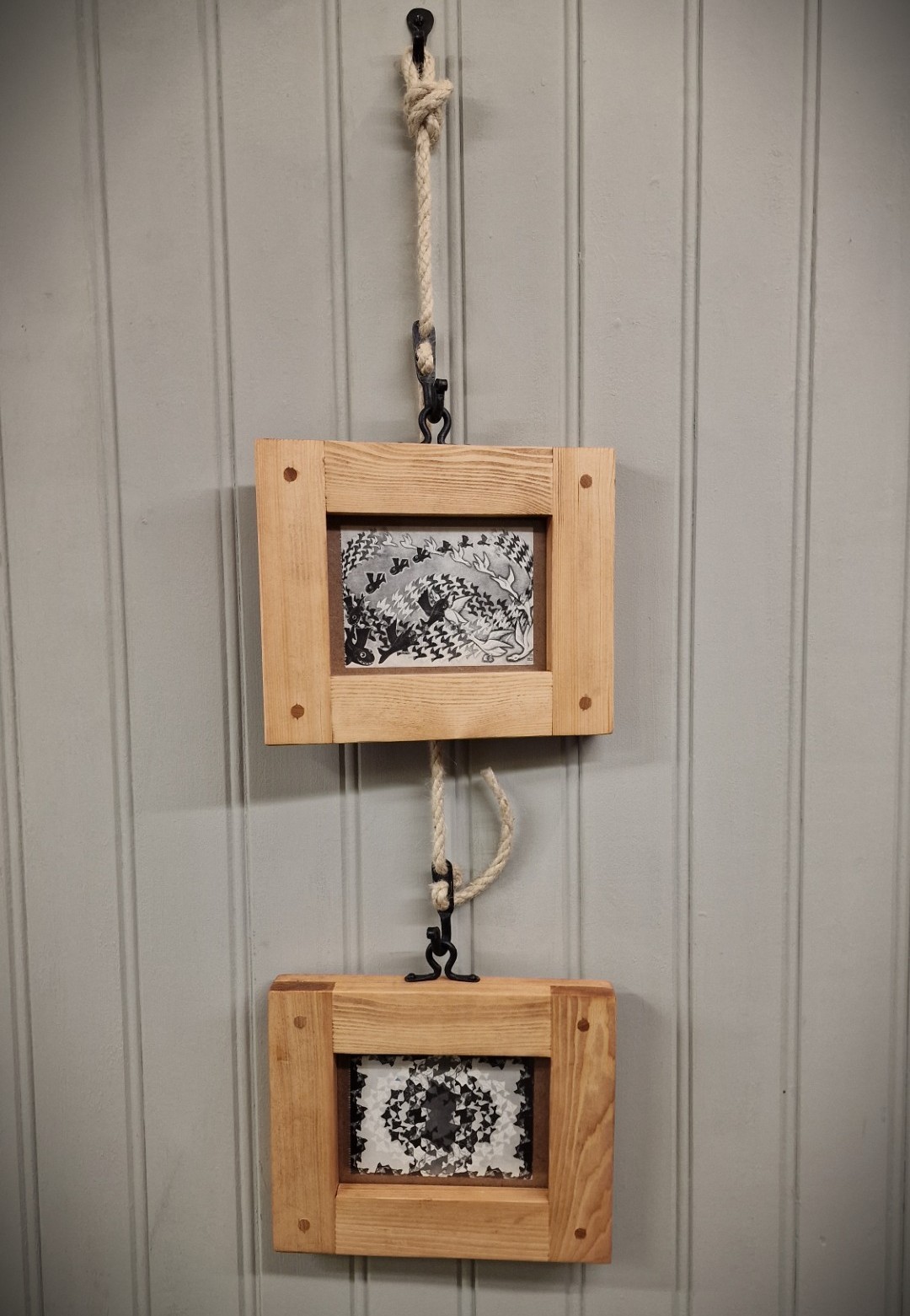 Traditionally crafted hand forged ironmongery, accessories for hanging our chunky rustic wooden multi aperture picture frames, from Somerset UK