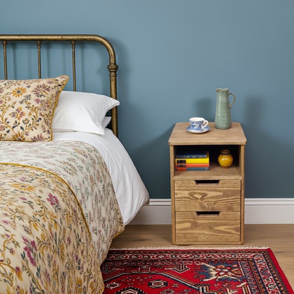 Please note you are only buying the wooden bedside cabinet in natural wood, props not included unless specified.