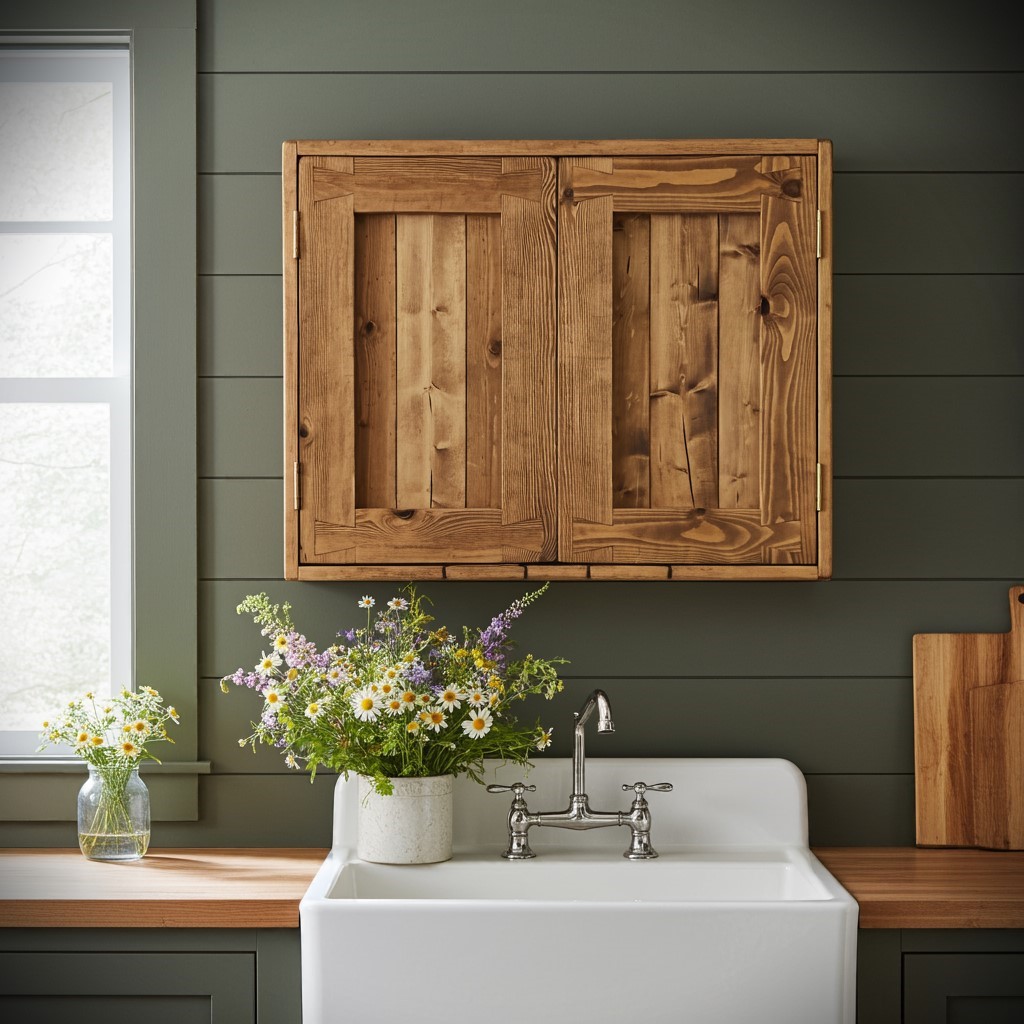 Our rustic wooden kitchen wall cabinet measures approx. 56 cm high x 70 cm wide x 18 cm depth.